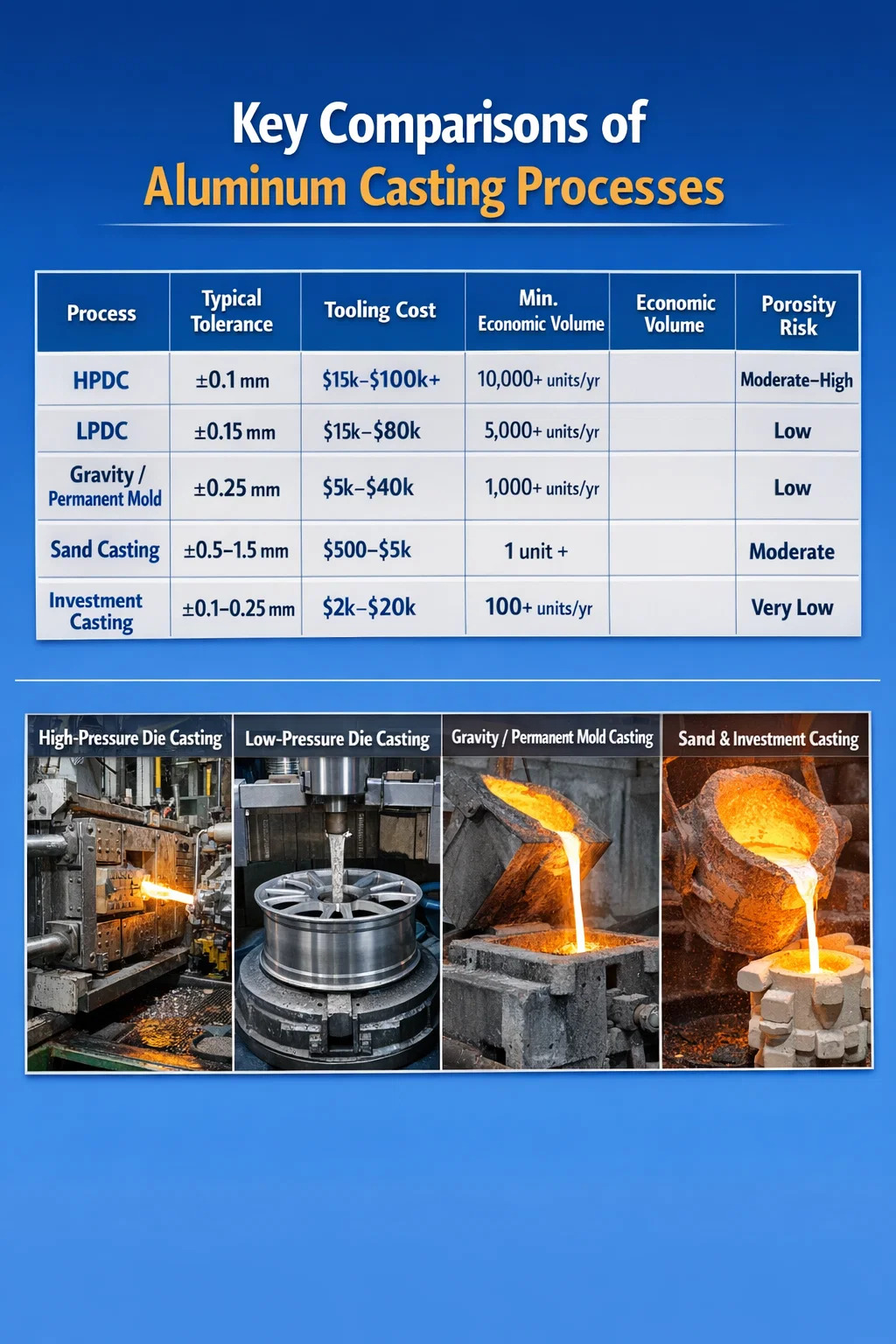 | LPDC | ±0.15 mm | $15,000 – $80,000 | 5,000 aonad in aghaidh na bliana | Íseal |