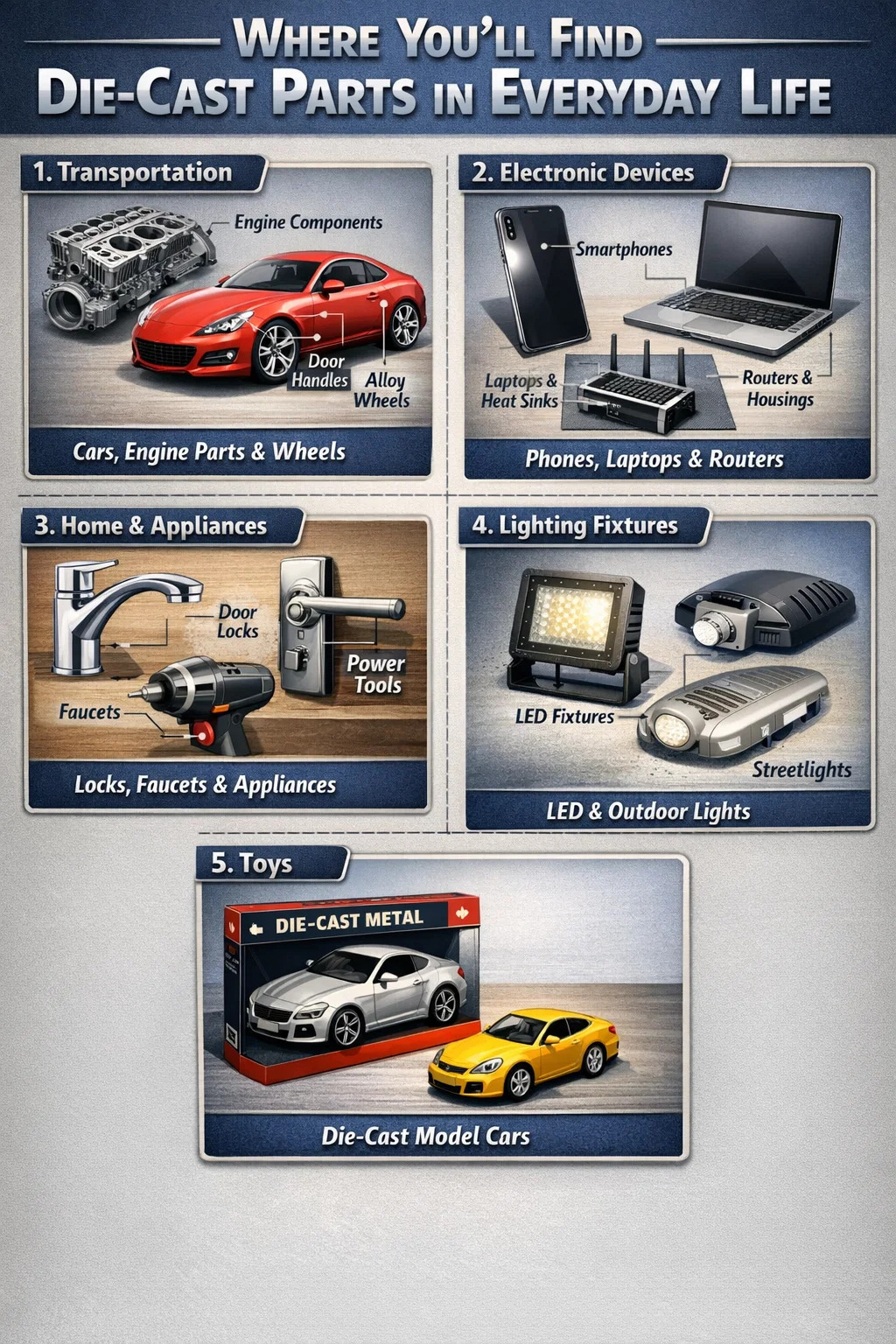 Diomailt teasa agus cosaint: Ní mór do lúibíní inmheánacha ríomhairí glúine agus frámaí fón póca ard-deireadh a bheith éadrom, láidir, agus in ann teas a scaipeadh ó na sliseanna; tá páirteanna bás-teilgthe iontach.